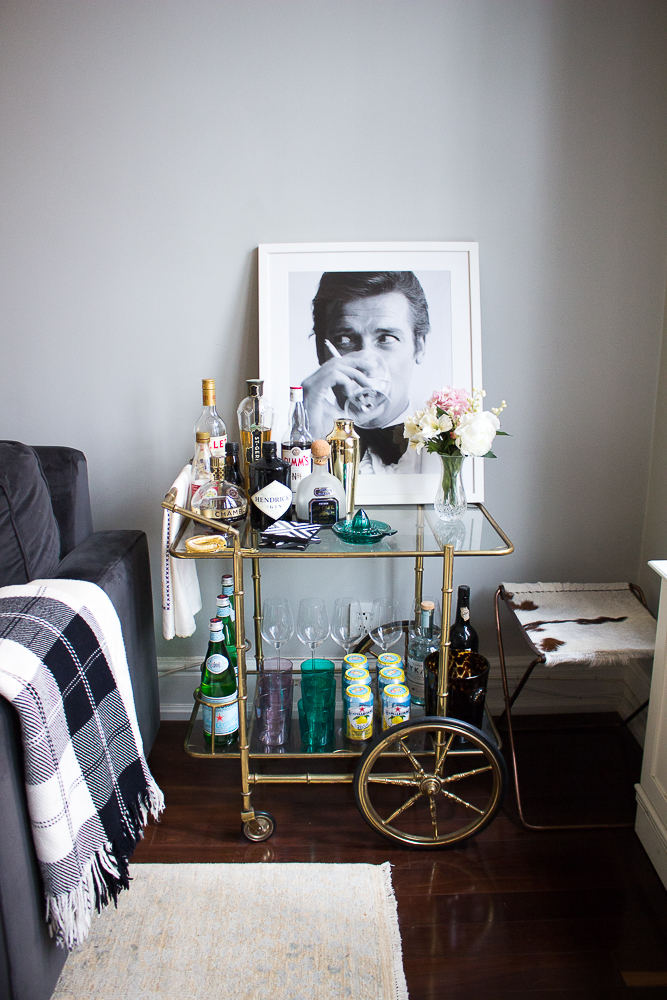 When I moved into my first apartment in New York, I was hell-bent on finding a bar cart for our living room. Sounds kinda random, I know, but it’s classic me. I spent hours scouring the internet for the perfect cart within my budget. Turns out, bar carts are super expensive! The Ikea DIY started to look like my only option. And then, a miracle happened. I found it. The perfect cart. On surprise, surprise – Craig’s List! For $250! It was a dream come true. I dipped into my savings and had that bad boy dropped off ASAP. It’s been a love affair ever since. Below are some tips I’ve discovered over the years for taking your bar cart from meh to WOW!